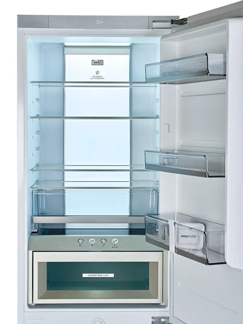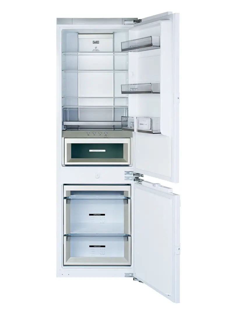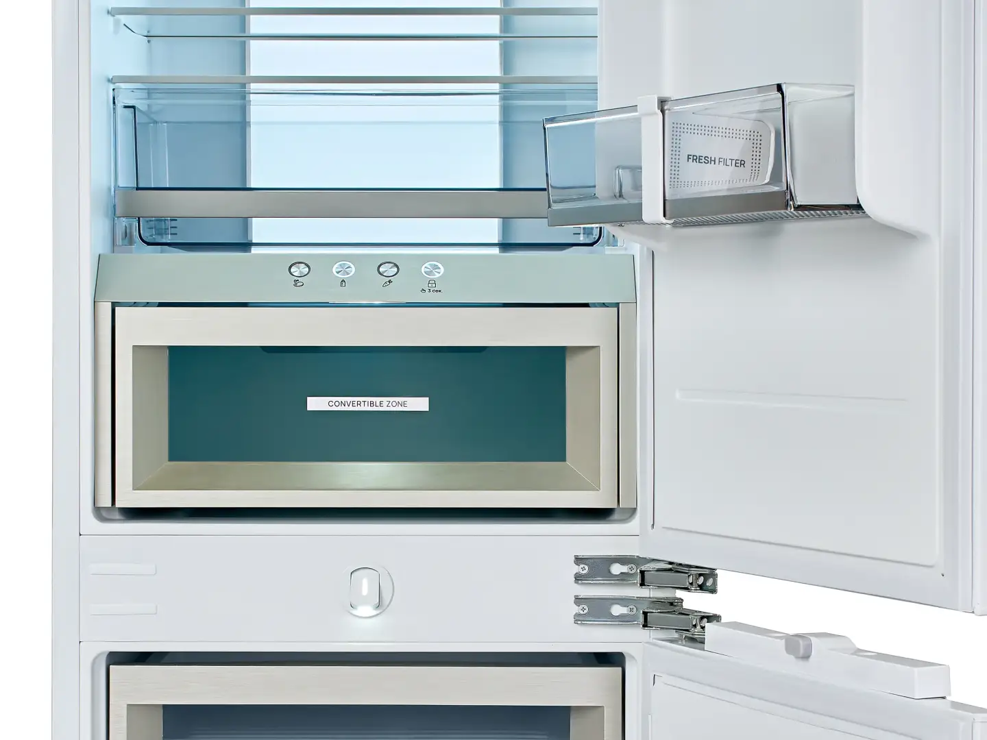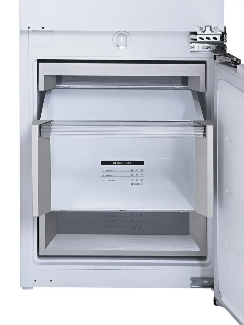 Встраиваемый двухкамерный холодильник с нижней морозильной камерой сочетает в себе премиальный дизайн и передовые технологии.