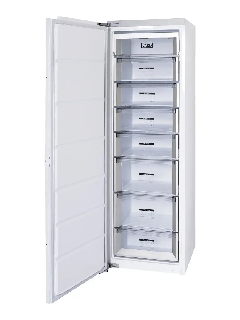 Встраиваемый морозильник шириной 60 см и высотой 177 см можно установить на кухне как отдельный прибор или в паре с холодильником, используя их как side by side