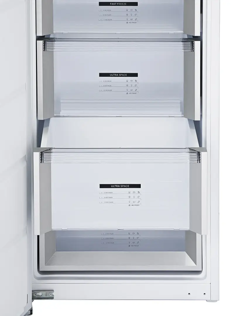 Морозильник с системой No Frost не требует размораживания камеры. Потоки воздуха внутри камеры распределяются равномерно, исключая перепады температур внутри прибора.