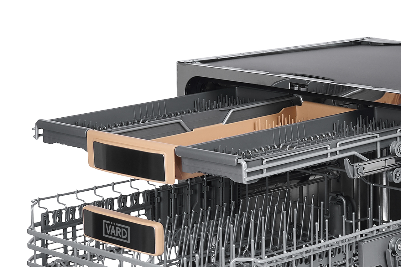 В верхней части посудомоечной машины установлена дополнительная корзина для столовых приборов. Размещение в ней позволяет обеспечить их более эффективную мойку и сушку, а также освобождает место в нижней корзине для размещения остальной посуды.