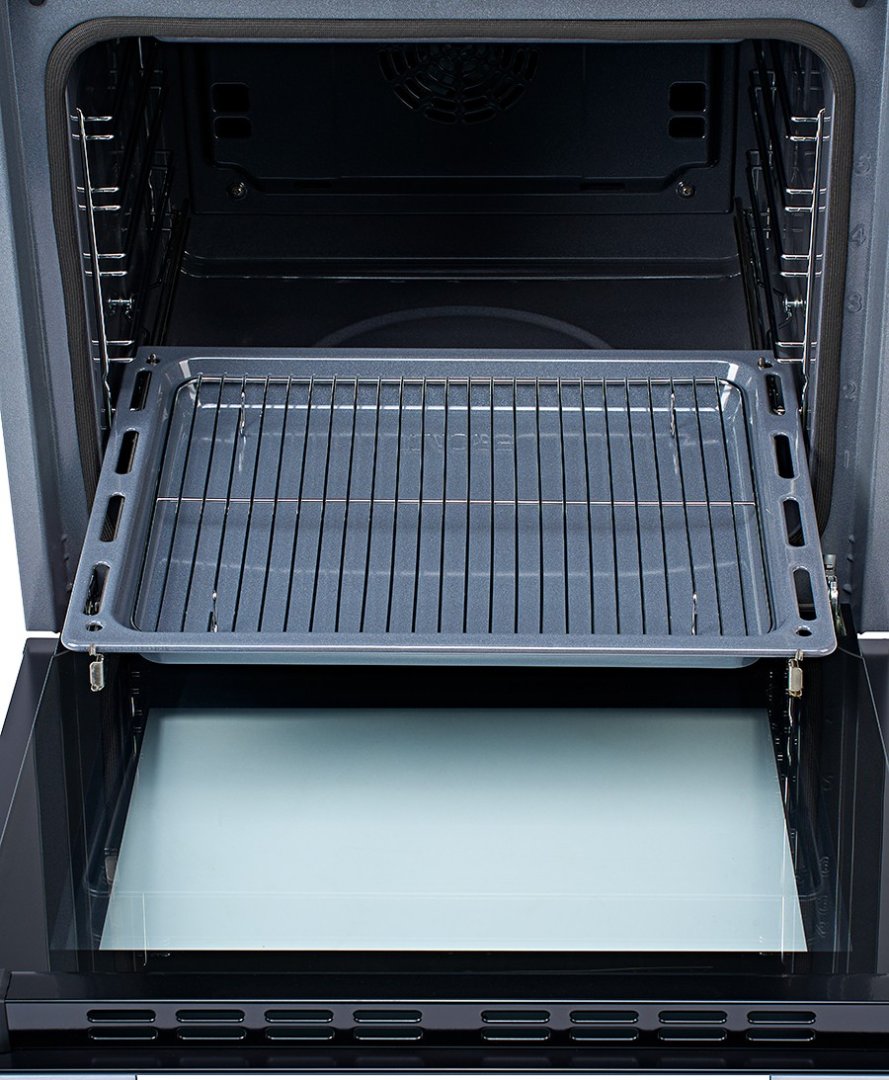 Выполненная в эффектном сером цвете эмаль духового шкафа произведена по технологии, облегчающей очистку после использования.